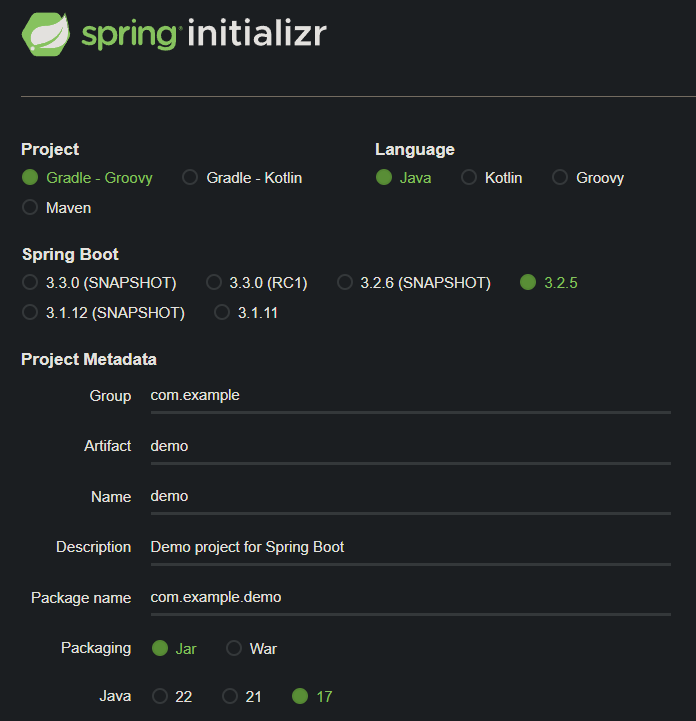 Spring Initializr Reference Guide - Getting Started - Advanced Options에선 Group, Artifact 등의 요소를 Apache Maven의 그것과 비슷하게 따라간다고 한다. [그 Apache Maven에서의 groupId, artifactId, version 네이밍 컨벤션]((https://maven.apache.org/guides/mini/guide-naming-conventions.html)을 보면